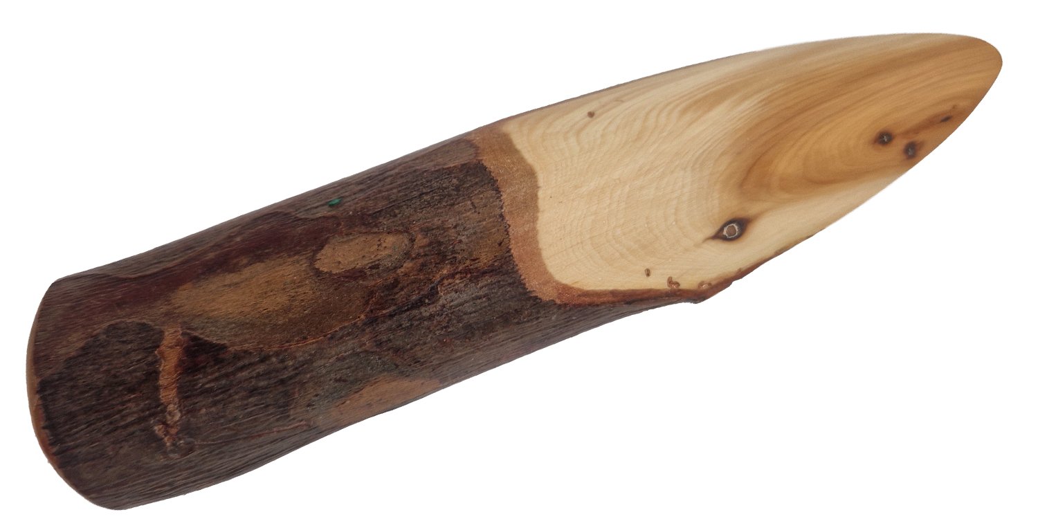 Dit hout vormgegeven als mes komt van een goed bevriende wijze oude taxus uit Zuid Engeland. Laat deze wijze vriend in vorm van een mes je als oude wijze gids helpen via je intuïtie!